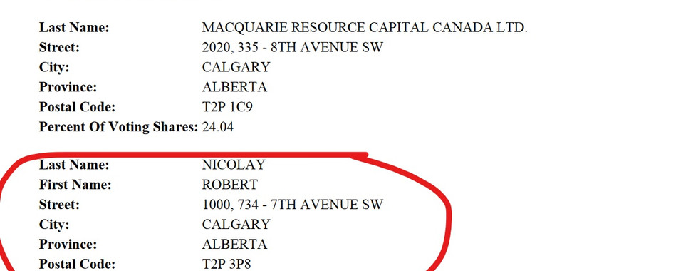 This one’s interesting; Mr Nicolay’s named in this affidavit. Both companies are named after defaulting on $25 million debenture, original amount - $20 million. They borrowed more & extended the payback period three separate times over less than two years (pg 3 Debenture). Over $32.3 million owed as of Mar 31/17.